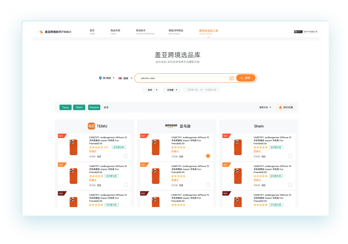 - 全球爆款选品/寻找货源。