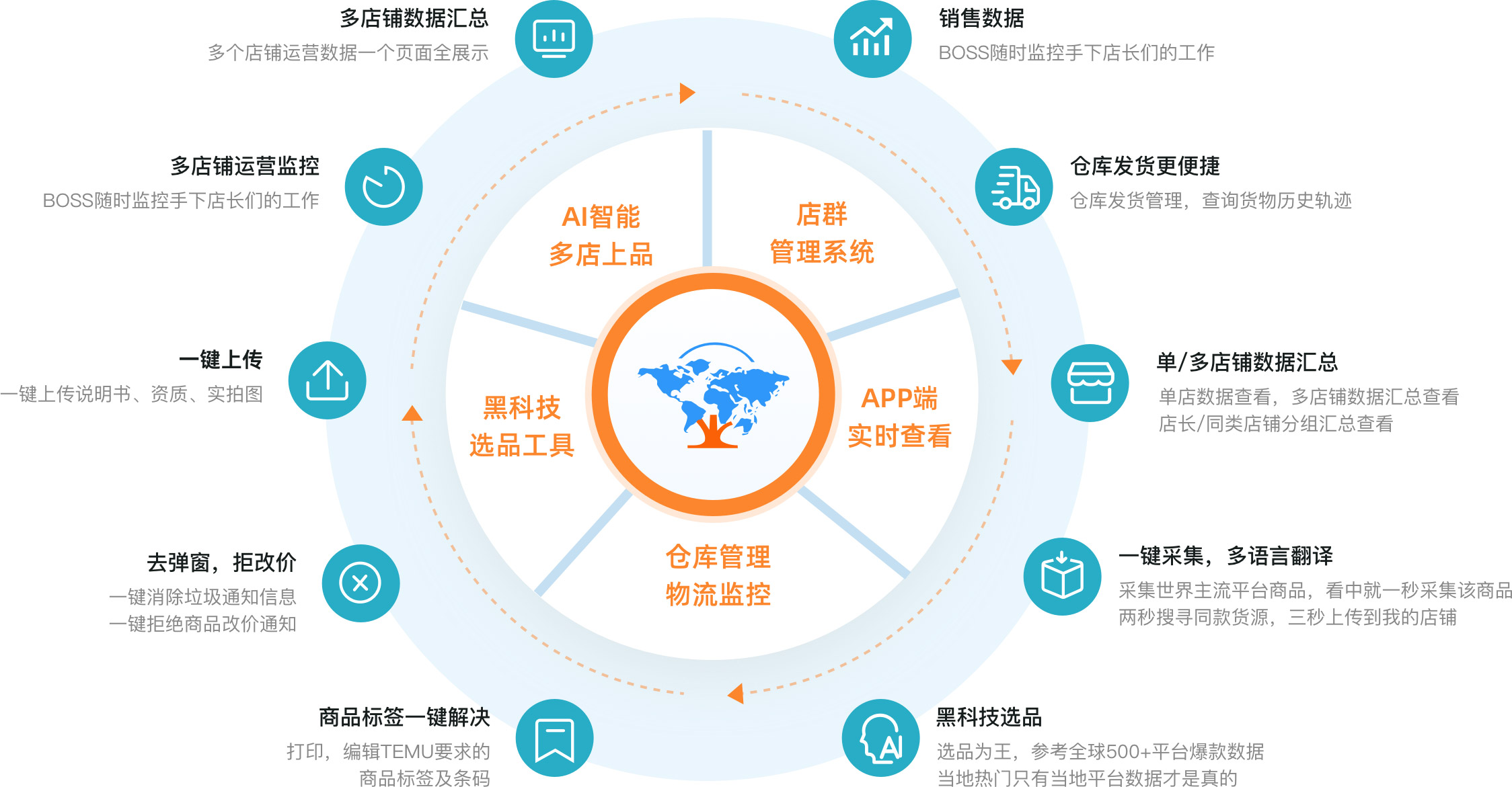- 不用多店铺来回切换。